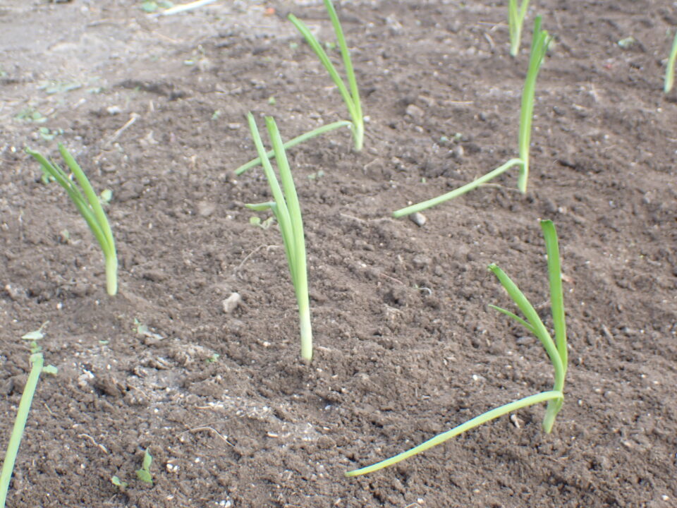 タマネギの苗の植え付けと、スーパーで買ったニンニクの発芽