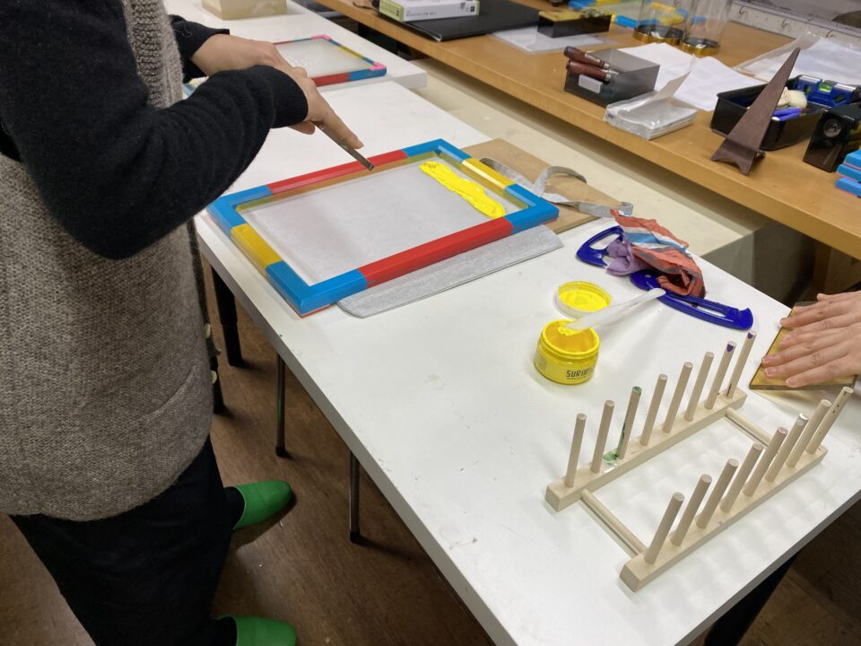 こちらで、版画のワークショップを体験させていただきました。