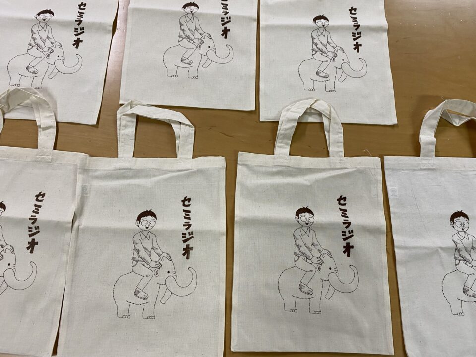 シルクスクリーンのキット「SURIMACCA」を使わせてもらい、僕の配信しているポッドキャスト「セミラジオ」のグッズを制作しました!