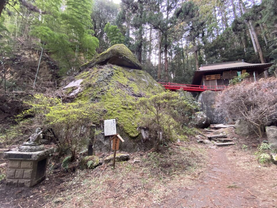 神社の境内に巨石がゴロゴロと転がっているのですが、神社の入り口から急角度の斜面が続いており、足腰の良いトレーニングになりました笑